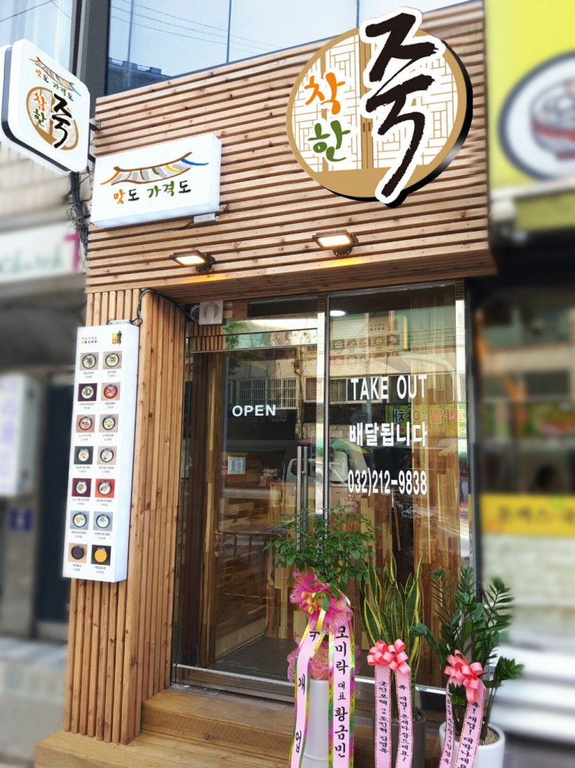 상호: 착한죽 | 대표전화 : 1800-5974 제물포점 전화 : 032-212-9838 / 인천시 남구 숭의4동 58-8 1층 착한죽 사업자번호: 4620100904 / 대표이사: 김영욱